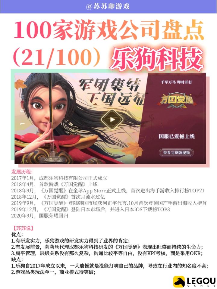 简介:成都乐狗科技有限公司LEGOU GAMES,简称“乐狗科技”;是成都本土专注于手游研发的精英团队。公司成立于2017年1月。