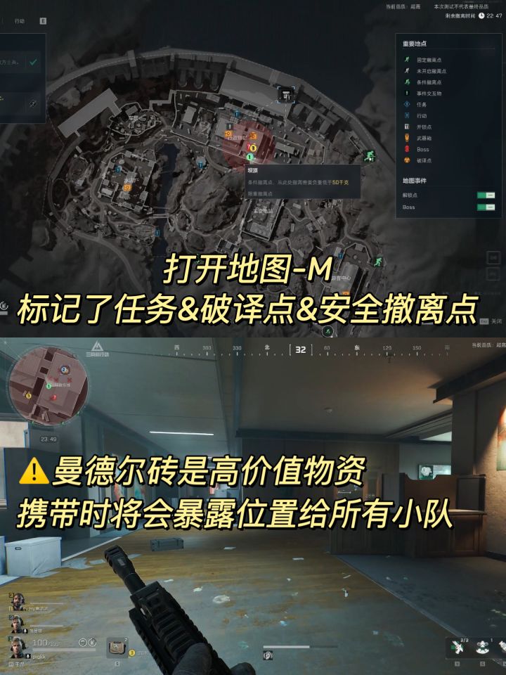 【烽火地带】3人组队搜集抢夺物资的摸金玩法,有点类似The Finals。开局我们要选好装备、弹药和医疗物资等等,但注意不要携带太多东西,每个人的承重是有限的!开局负重越多,我们能搜集带出的资源就越少!在地图中会存在多个任务点、安全撤离点和Boss,其中最值钱💰的还是曼德尔砖,成功破译之后有机会获得稀有物品,也就意味着它是每个小队抢夺的目标,最终和队友安全到达撤离点即为任务成功!