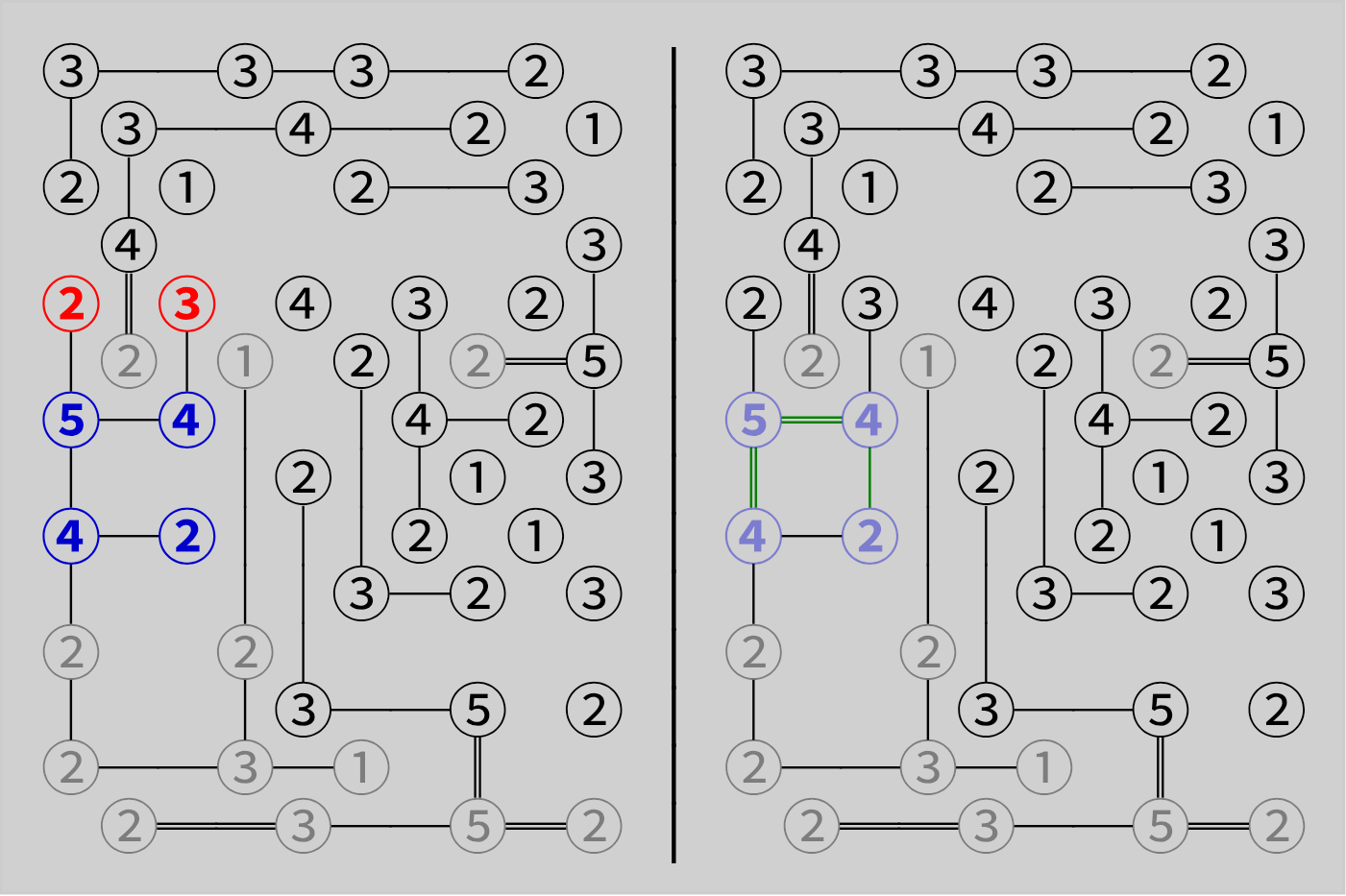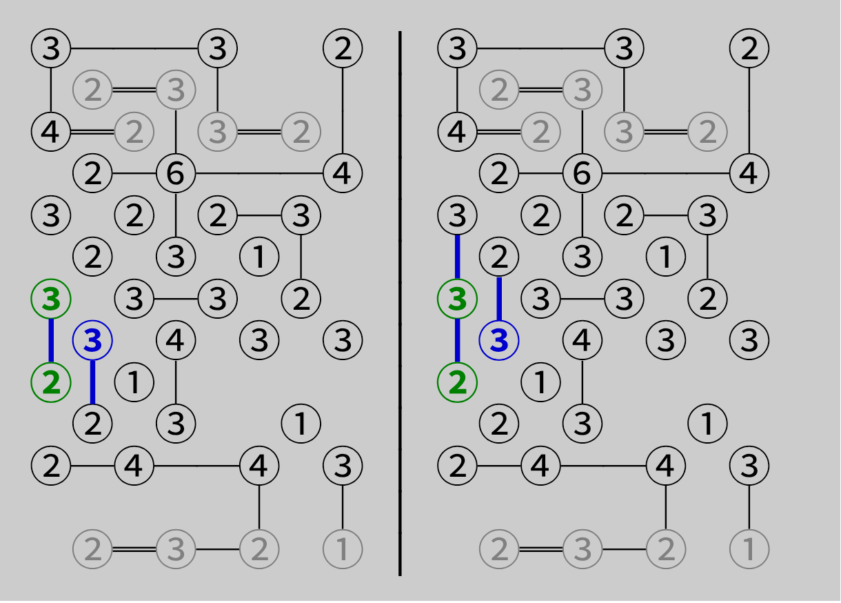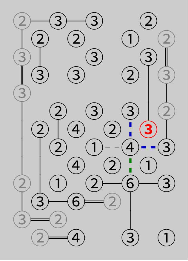 标准 Hashi 谜题只允许一个解,可利用此规律进行推导。