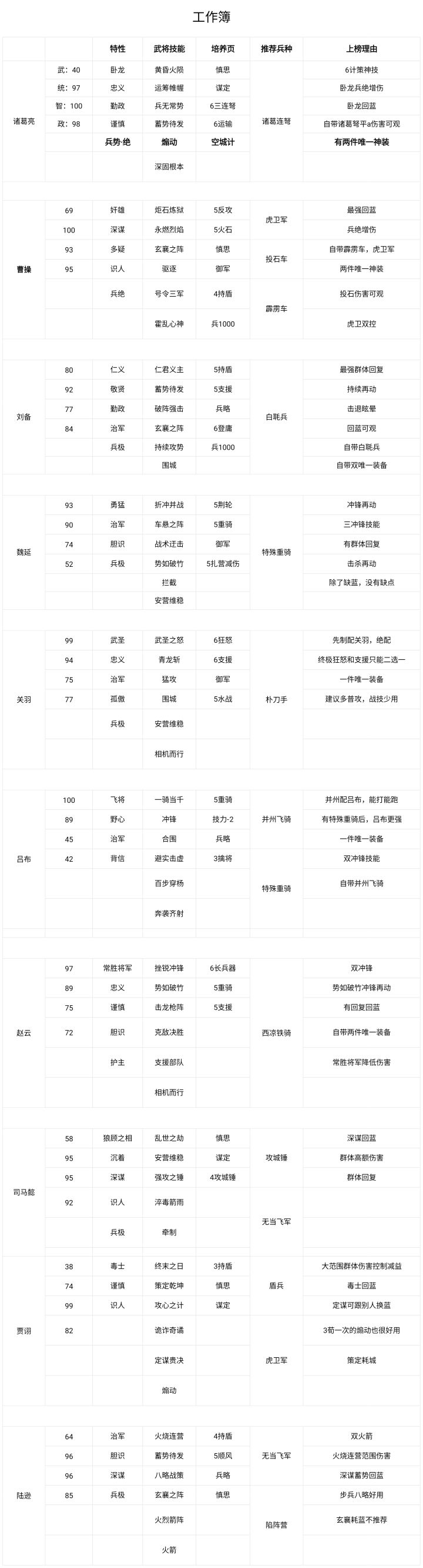 逐鹿T0武将表