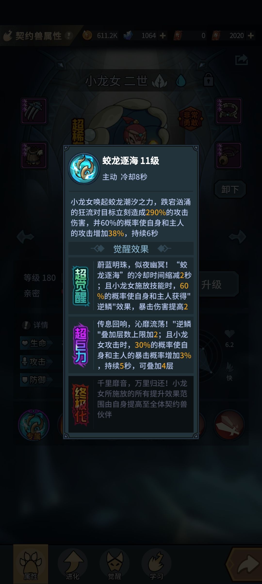 技能方面:海之星点满,魔力汲取点满,魔召:大蛇鱼点满,深海加护点满,海怪附身点满,幽暗壁障5级,暗域爆破点满,幽光瞳点满,暗影之力8级,暗月七级。根据平时打BOSS更换有自保带海怪附身没有带壁障,暗域爆破,加暗月打持续技能爆发,召唤海怪就带海怪加成的技能