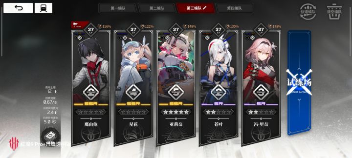 2.队伍组成,那由他,苍叶,里奈,奶茶姐,星花。