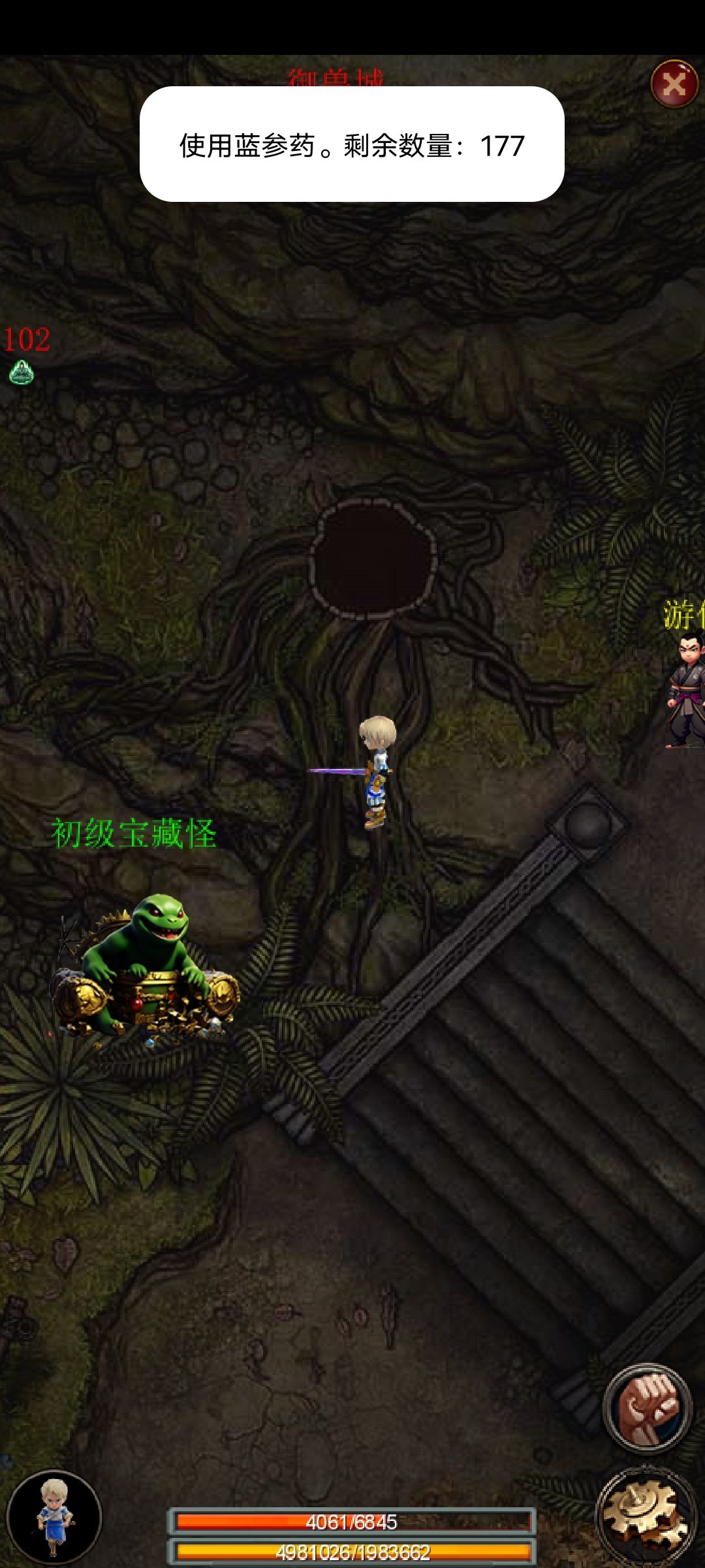 属性差不多就可以尝试打树王了,在初级秘境的最里面右下角,会有不小的概率掉落初级御兽丹,突破当前等级上限,可以进入初级地图
