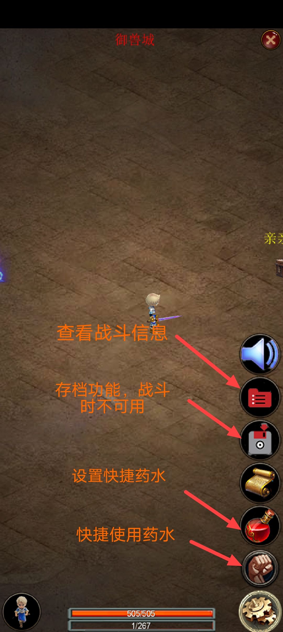 打开设置弹出功能区,选择一种快捷药水,点拳头可以不用打开背包直接使用药水(或者半血以下自动使用药水)