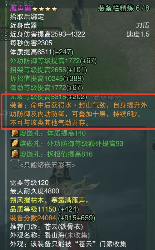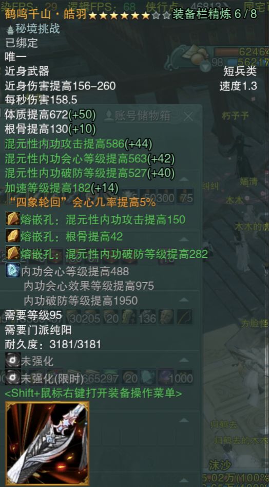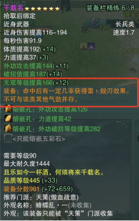 - 属性:评价角色能力的各种指标,不同的门派心法有所侧重。属性通常又是通过角色穿戴的装备来实现,每个职业有一些属性是固有的属性,所以我们主要关注的就是附加属性即装备中的绿色词条。