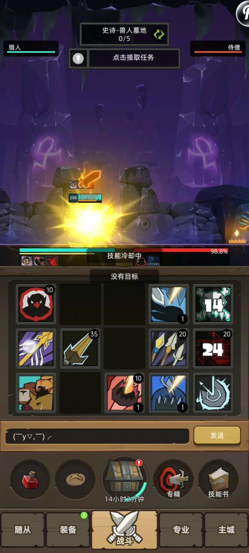 装备最好用前面老一老二老三刷出来的火妖两件套+蜘蛛匕,这样不用频繁后台。
