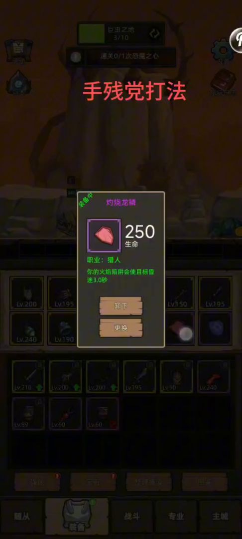 ①刷195+200+195蜘蛛匕,打多目标神装,理论上能无限前排(请搭配150恐惧弓使用!)