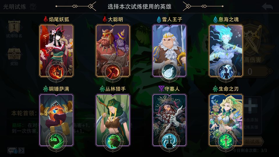 蘑菇补血流:(孢子+树妖+低语者+生命古树+治愈之风等)该常规打法一般可以拿满魔晶奖励,2000分伤害打满需要的条件较高。