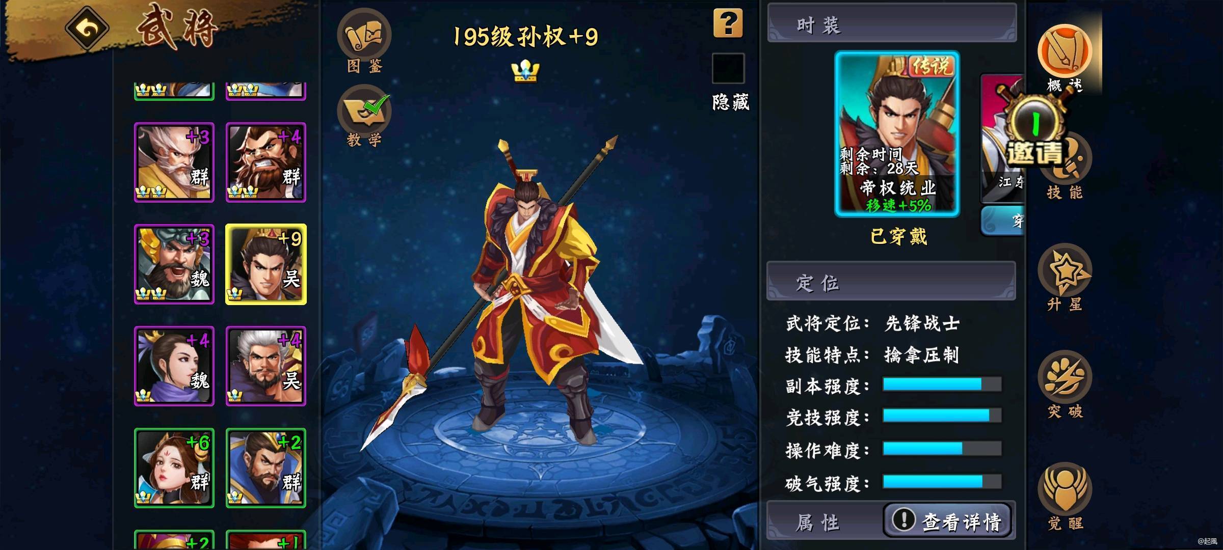 虽然要求略显苛刻,首先需要1800+得积分,才能通过4000+得元宝获得武将特效皮肤,或者可以退而求其次获得限时30天的限时皮肤,好处是一样的效果,元宝花费只需1-200左右,性价比非常之高。排位,巅峰,积分赛等等pvp竞技场上,一溜儿的人名币皮肤很多时候可以让对手不战而逃,从而达到不战而屈人之兵的目的。