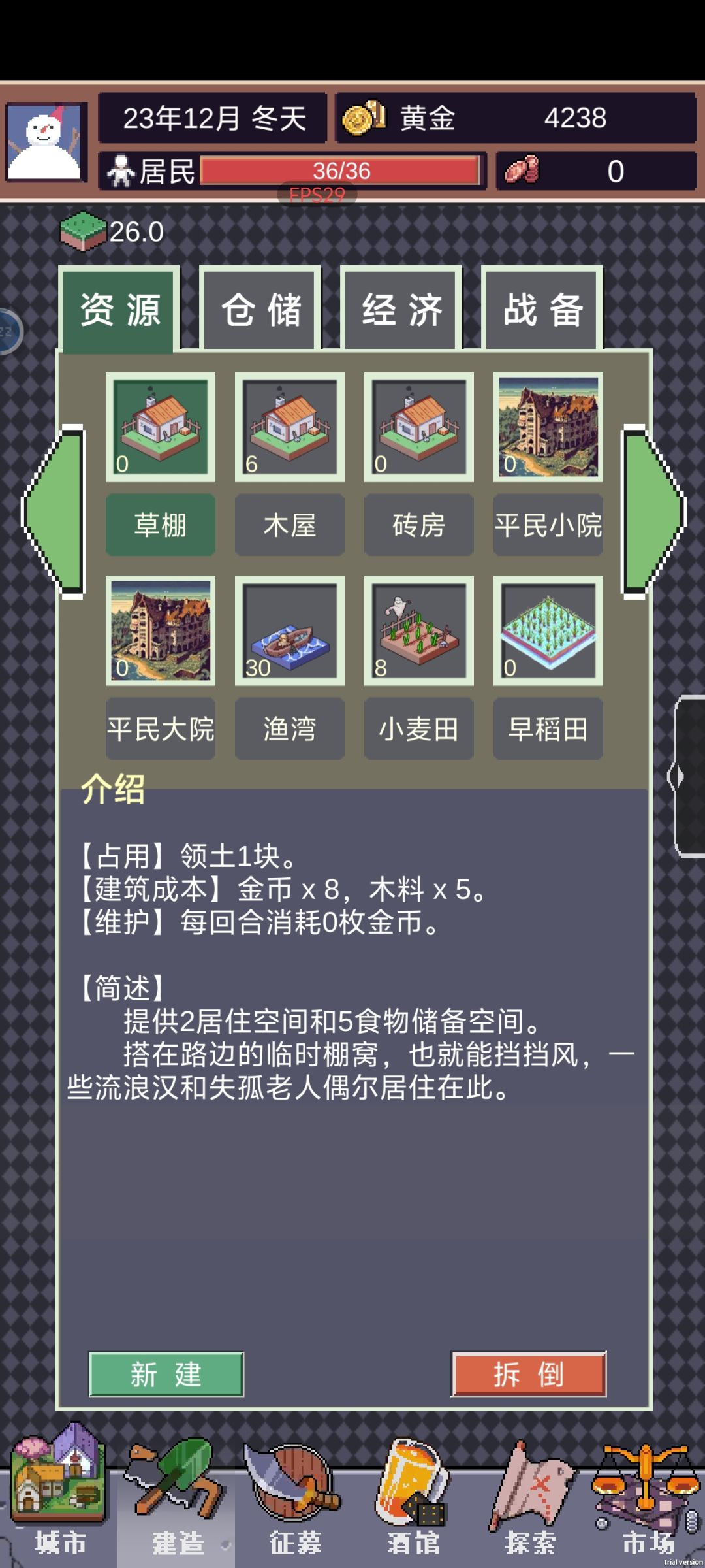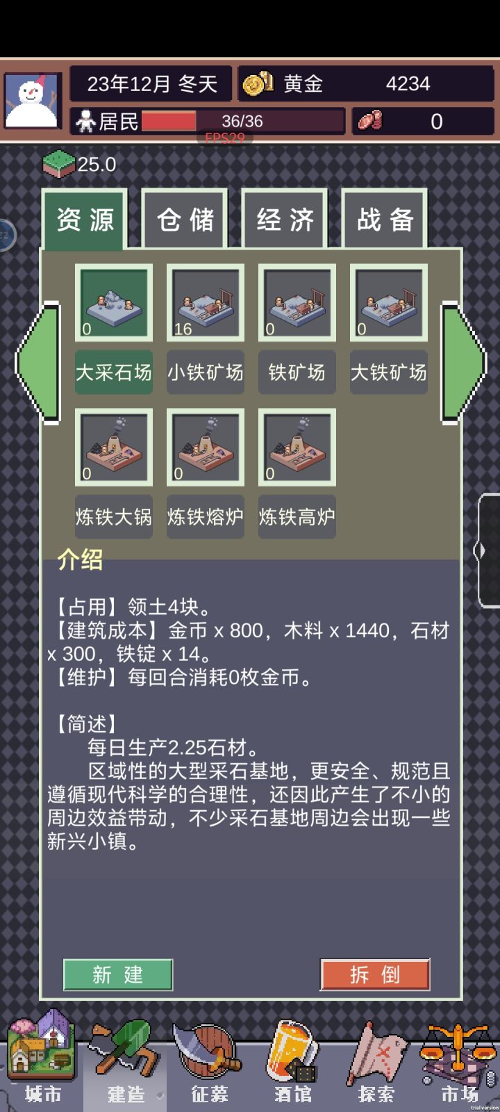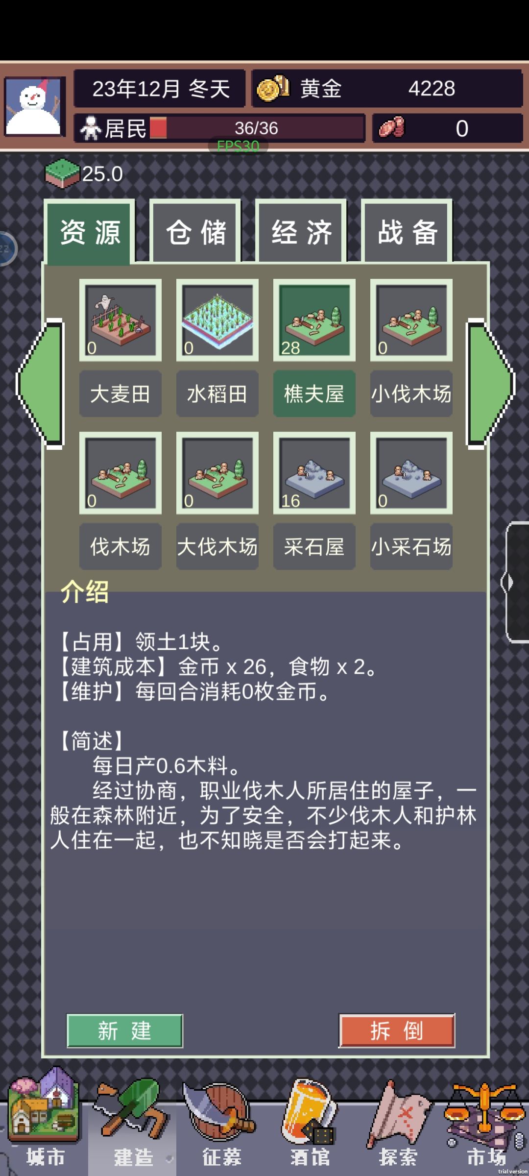 平稳渡过前期,优先发展经济,保持粮食、木材、石材、矿材的稳定,稳定以后开始升级建筑,2:1升级