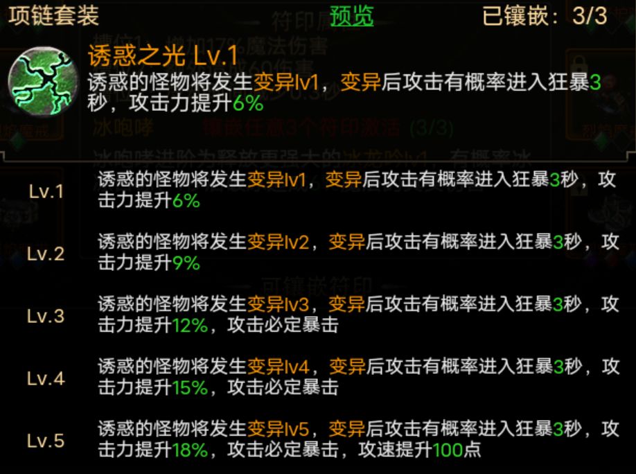 符印3级蓝色增加一个初级效果质变,5级红色增加一个高级效果质变