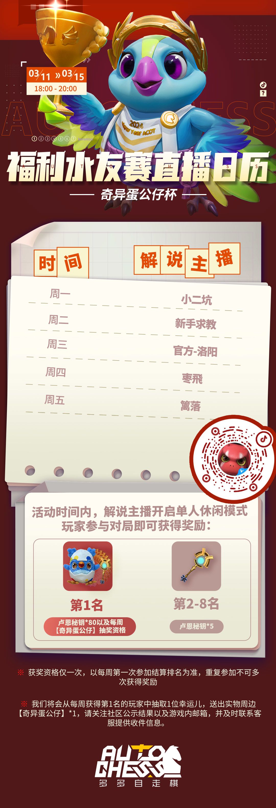 直播日历丨奇异蛋公仔杯水友赛