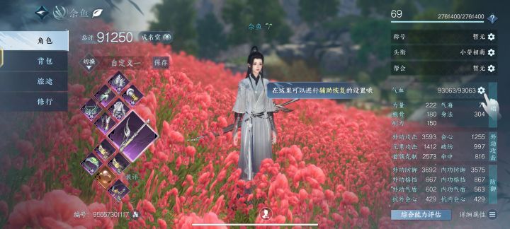 3.凑出内功周天,获得周天的加成,新手阶段会送三个内功,可以先用其过度,狗粮不够的可以去游历里面找补领,获得狗粮,同时将镶嵌刷个一级加成即可,后面慢慢升级,在补领里面也有强化需要的道具,将装备大致强化即可。