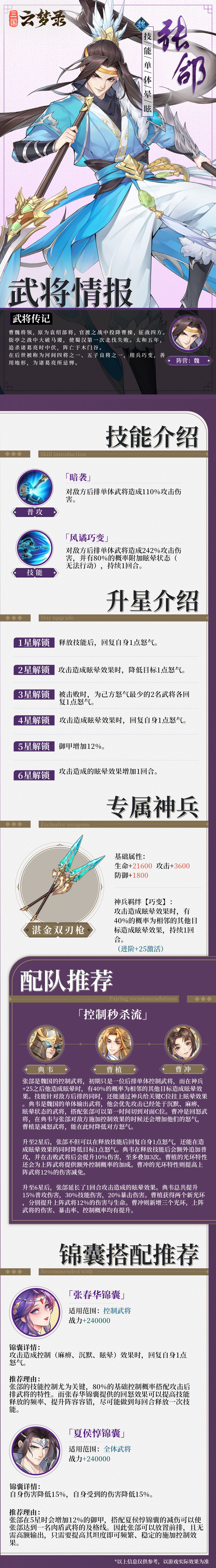 在《三国云梦录》中,张郃的攻击会眩晕敌将,不仅能回复自身怒气,还能减少敌方怒气,在战斗中不断释放技能,而敌方却难能还手,称得上团战永动机。可以说是: