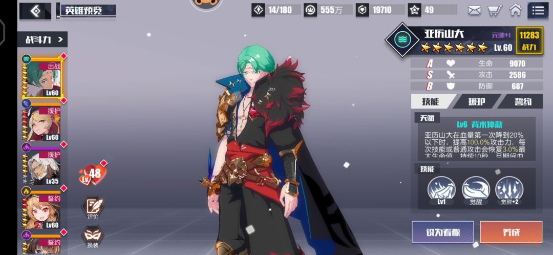 这样看起来好像觉得亚历山大不是很强,那么你再看看亚历山大的天赋(加攻击100%,无敌10秒,还回血)
