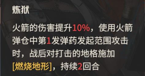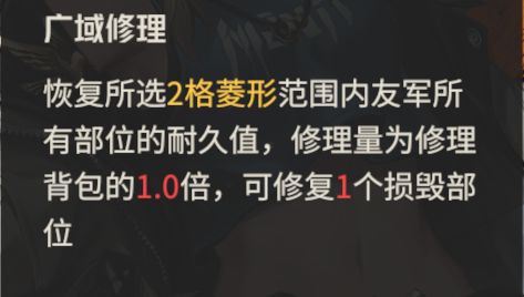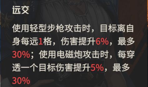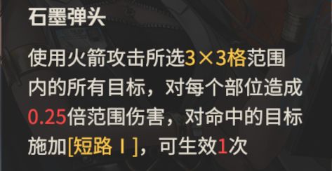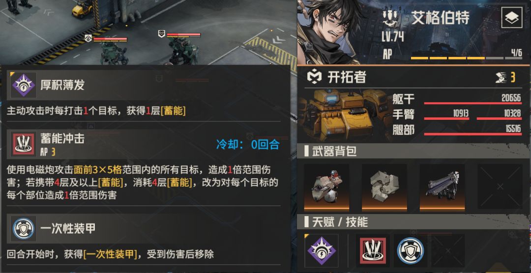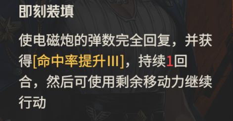 用电磁炮攻击前方3*5范围的敌人,跟洛莎的肃清范围一样,如果身上有4层蓄能BUFF,则会变成对击中的目标,每个部位造成1倍伤害。