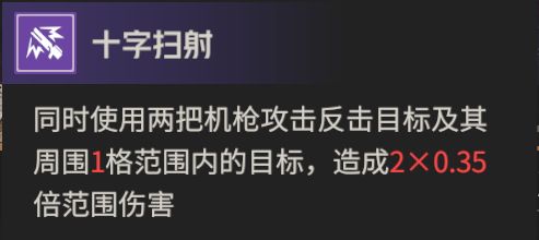 十字扫射相当于一个小范围的AOE技能,只要反击就会触发,所以我们在攻击BOSS时尽量避免吃到反击,尽量用远程攻击BOSS,如果要用近战打也尽量不要扎堆,以免让多个角色吃到BOSS的反击AOE伤害。