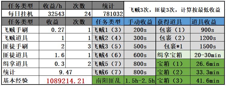 计算全是最低值预值:测试日常挂机3W,飞贼包裹x1预计经验1.1w~1.5W之间