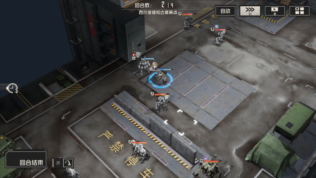 第3回合洛莎在上图中位置对她左下方的格斗敌人使用普攻即可,然后西尔维娅移动到上图中的位置,原地击破任意敌人的两个部位后,即可直接飞到传送点完成本关,同时完成3个成就。