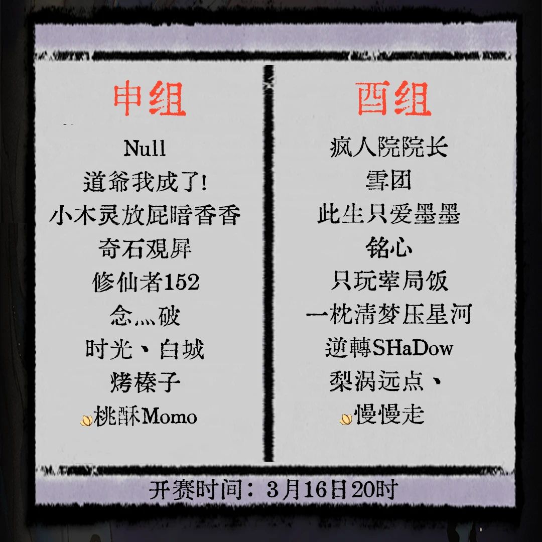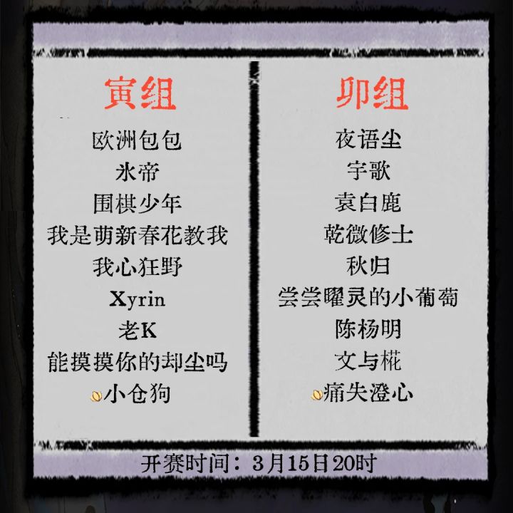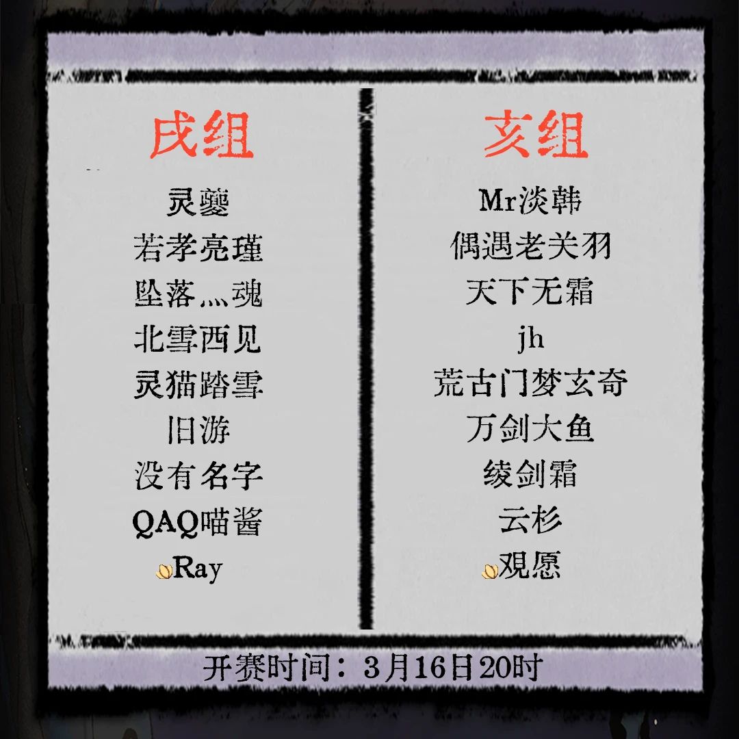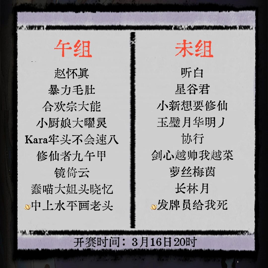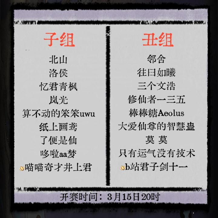)问仙会选手分组已定,十五日正式开赛!