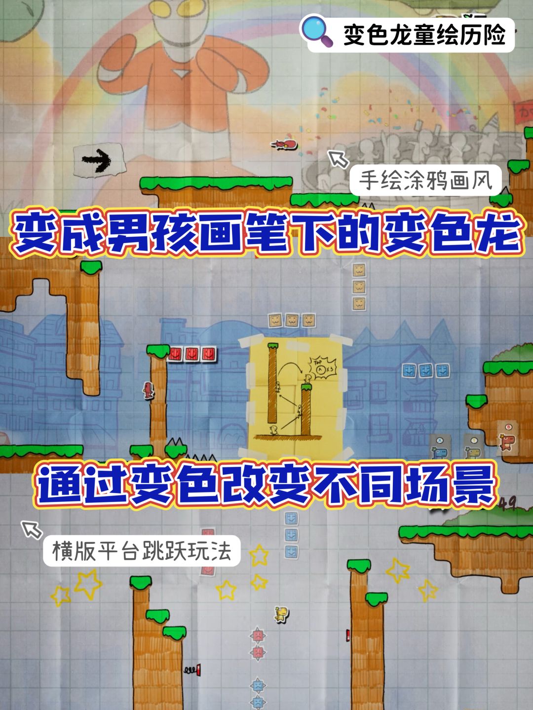 变成男孩画笔下的变色龙🖌️ 通过跳跃、变色改变不同场景 在这过程中 了解小男孩的内心