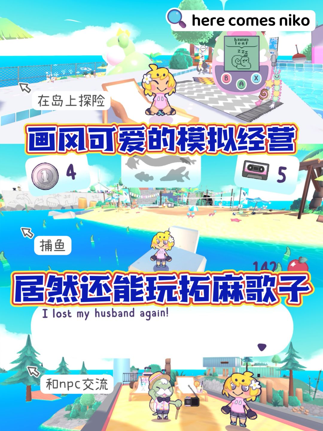 这是款画风很可爱的模拟经营游戏 游戏里你可以在岛上探险 除了你能想到的模拟玩法外 居然还能玩托麻歌子👾