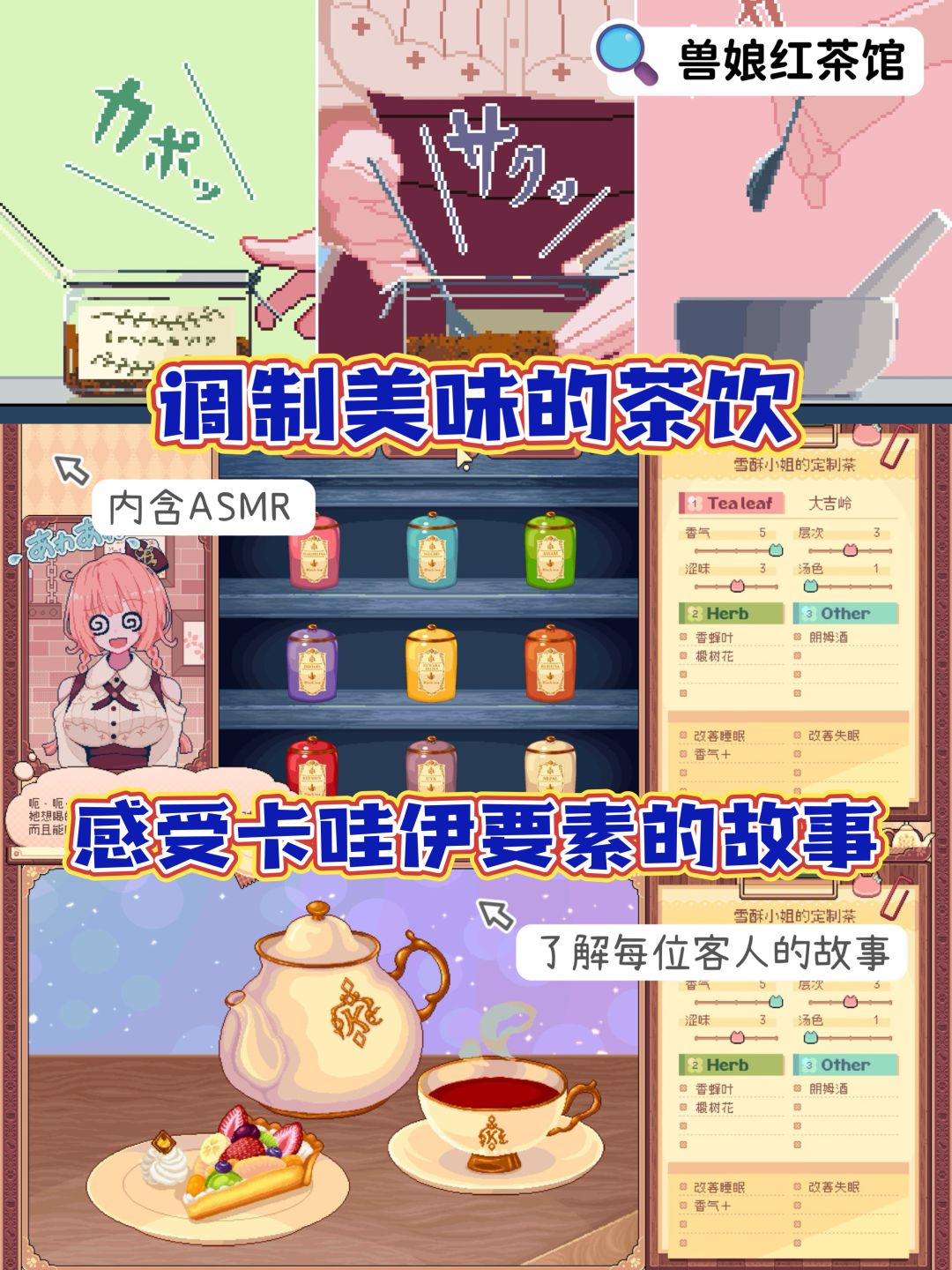 一款很卡哇伊的游戏 你将扮演茶饮店老板娘 给顾客制作美味茶饮 并听取他们的故事🍵