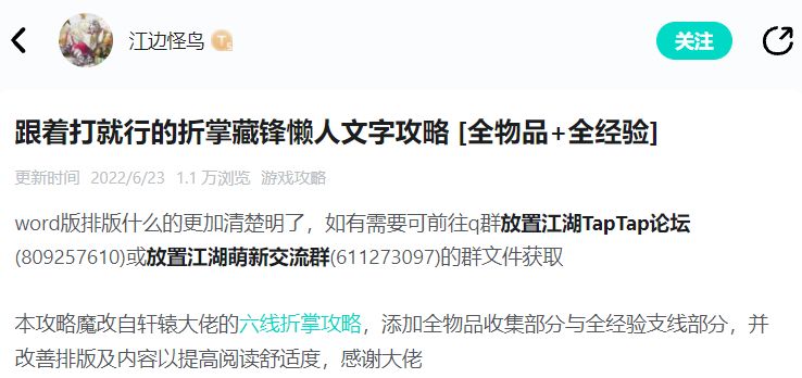 本文素材全部出于:跟着打就行的折掌藏锋懒人文字攻略 [全物品+全经验]