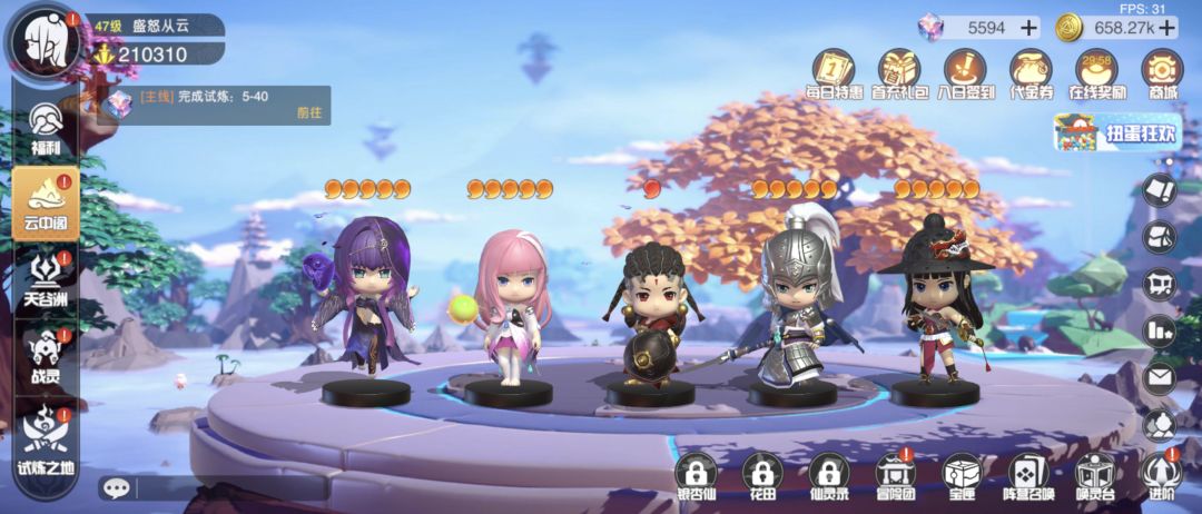 在本次测试中我们对云中阁进行了大规模更改,新追加的侧边UI栏可以一键快速跳转到各个功能,提升了整体的游玩体验。