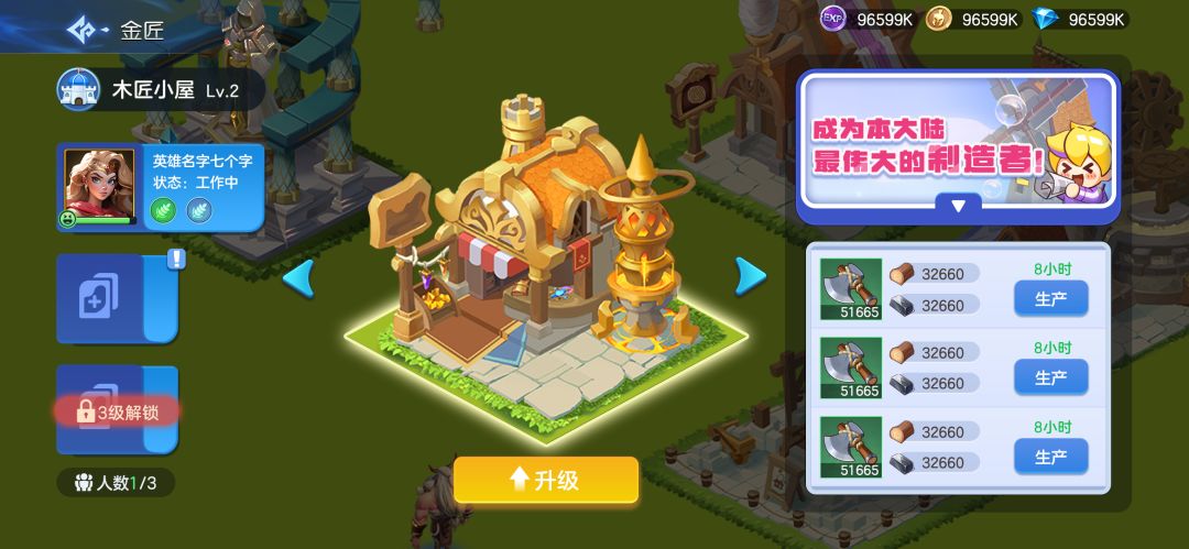 - 每名英雄拥有不同的家园技能,可以进驻生产、贸易建筑或是帮助建筑建造、升级,提高家园产出。