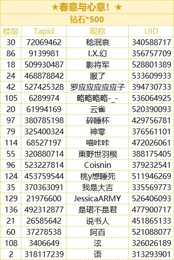 制作人们久等啦,让我们恭喜以下幸运的制作人们!