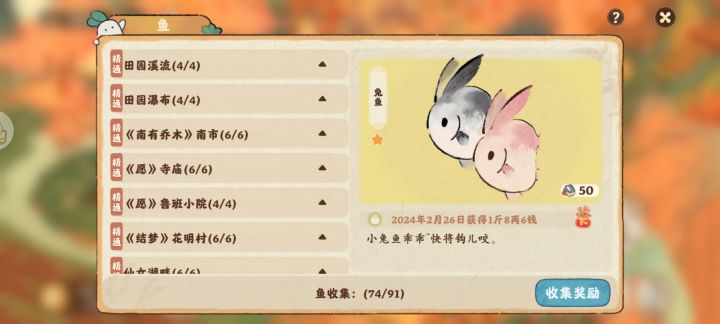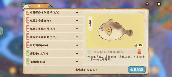 耶耶耶,我都集齐了,就是飞鱼滩的鱼类还没有集齐,这里的鱼有什么规律呀