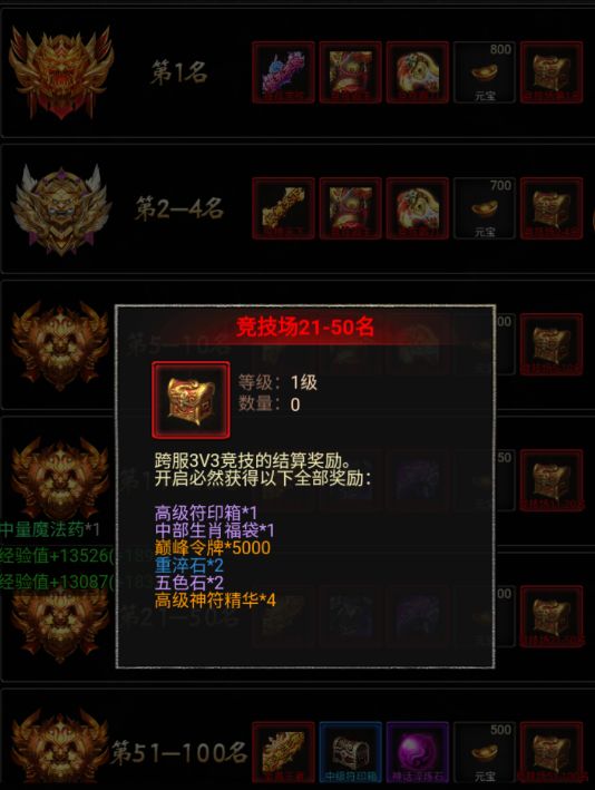 3V3:开服60天出现,可以约同区的另两个队友一起参与,以下会附一张排行50的奖励图,1-50名的奖励相差并不多。