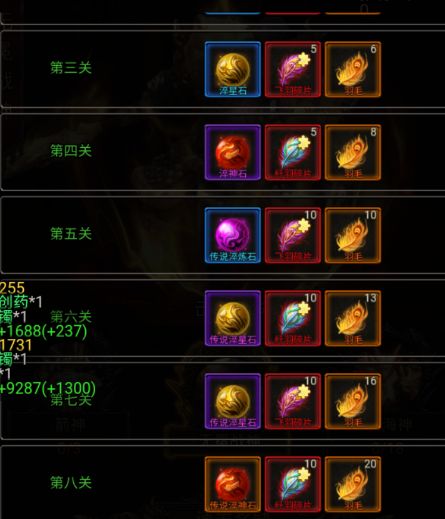 行会秘境:此图为行会多人图,可以约着行会成员一起进入攻打,只攻打boss房即可,小怪所提供的属性有可能不会生效的,反正我是试验了几次也没见生效。注意没有参与战斗的行会成员是获得不到击杀奖励的。下图为部分击杀奖励。