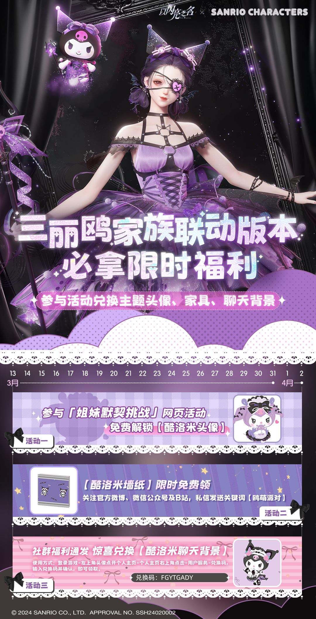 兑换码有效期:截止至2024年4月3日0点
