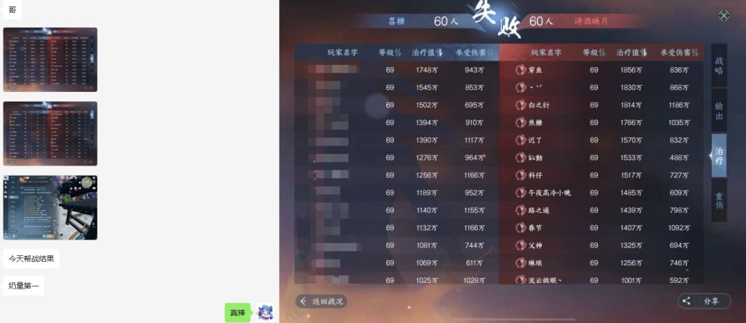 奶量达到一千七百万勇夺治疗量第一且承伤达到了九百万