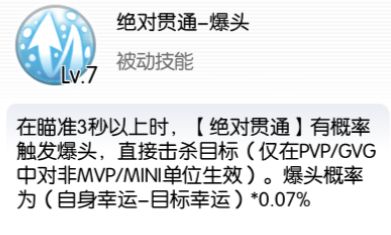绝对贯穿:触发爆头的技能,吃闪避,所以需要堆命中