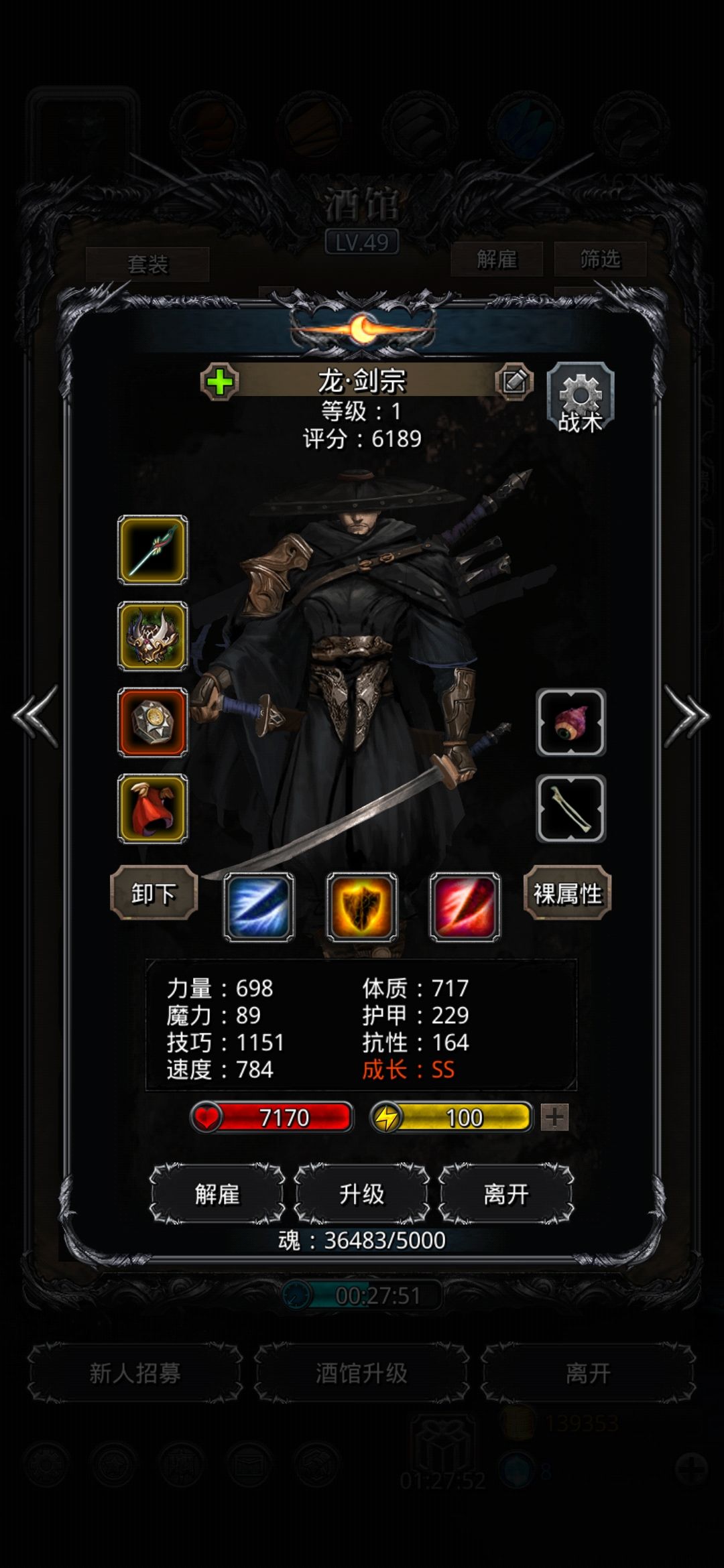 武斗者刺剑/英雄之铠/浩劫(必需)/蓝宝石或乌鸦披风,高命战利品。面板命中>45%,力速比<0.9