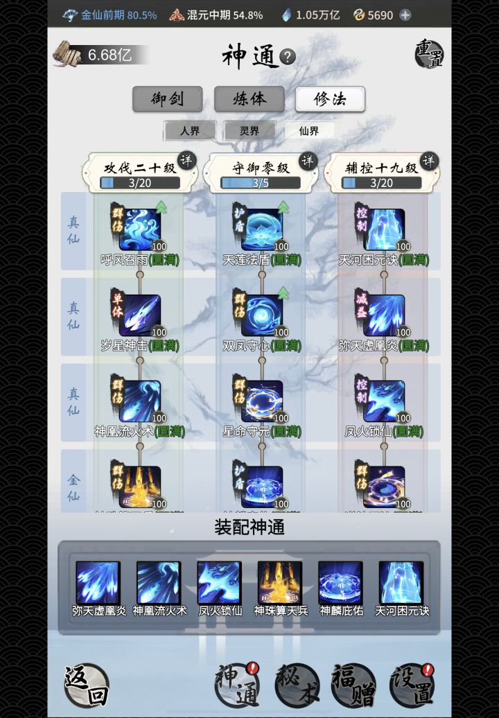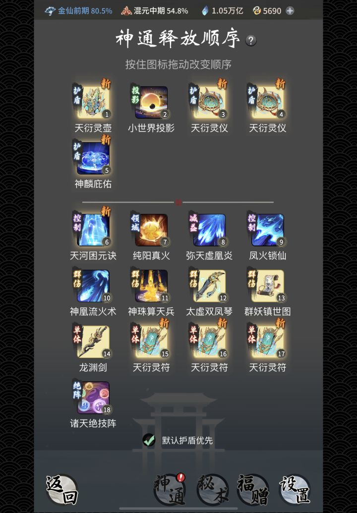 金仙神通怎么搭配,神通顺序应该怎么样,感觉盾一直衔接不上需要装备衫吗,仙灵又应该怎么搭配,求大佬指点