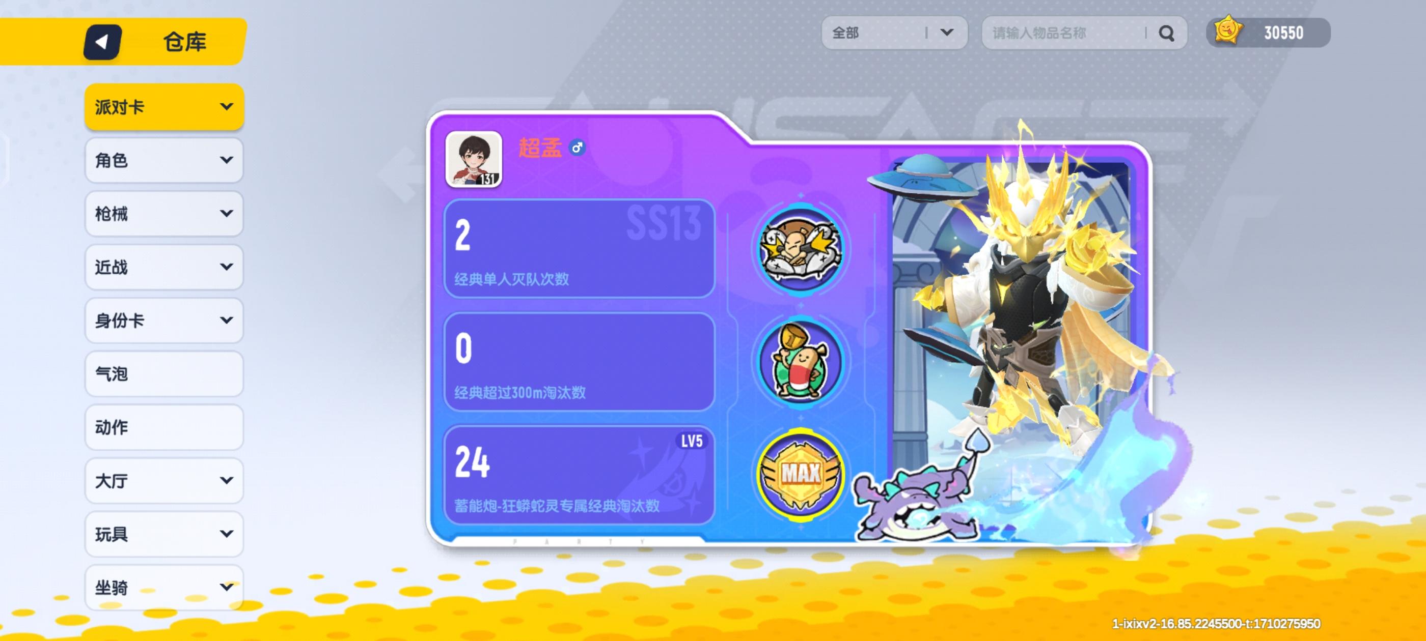 穿搭:麒麟(头、外套、鞋子),青龙-金(面饰),朱雀(手部),摩羯(面部),训练服连衣,蓄能炮(蟒蛇形态五阶)。