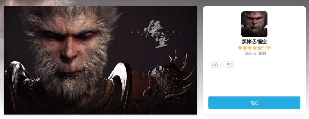 《黑神话:悟空》B站预约 9.9分五星好评