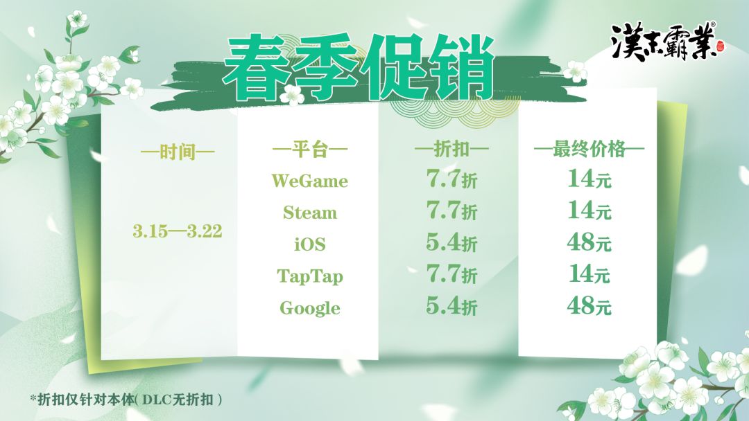 《汉末霸业》各平台春季促销时间及价格!