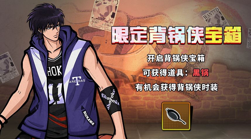 活动期间商场限时出售,开启可获得:背饰-黑锅(7天)、背锅侠时装(7天)、大师奖章、街头斗士勋章、能量饮料大等。