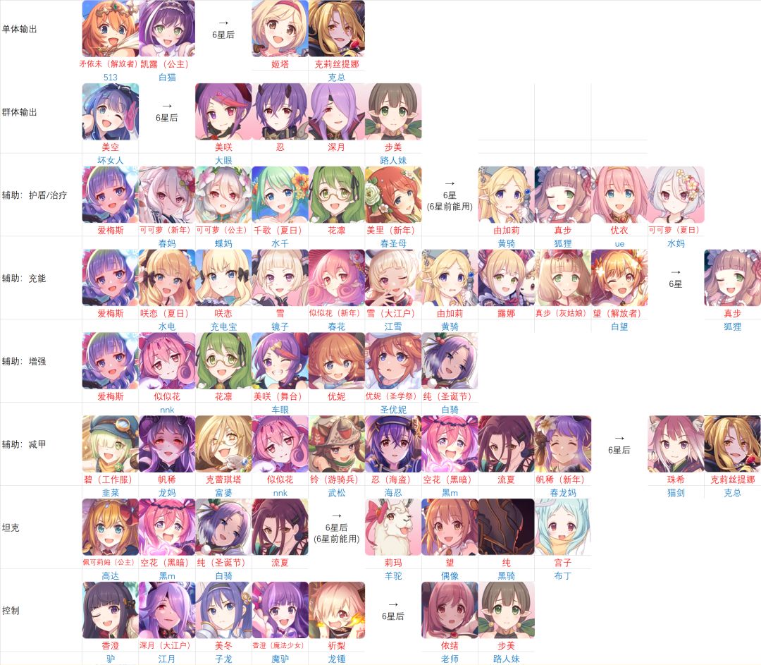 才能开花(升星):字面意思,真的会升星。5星以下提供基础属性的大幅度提升,6星会大幅度强化ub。需要对应的角色碎片,5星前只需要普通碎片(1-5星数量分别为15-30-100-120-150),常驻角色可以从主线困难图、地下城商店、竞技场商店、会战商店、外传等多个地方获取,可以用对应数量的碎片拼出一个角色;限定角色只能抽卡获得,碎片除了大师币商店可怜的一个月10片,只能从女神石商店购买,而女神石的主要获取途径是抽卡。为了每个人的资源考虑,前期只推荐把女神石用在限定角色身上,不要乱花(下面有推荐)。6星除了50个普通碎片,还需要50个纯净碎片和100个公主宝珠(大家喜欢叫星球杯),还需要角色已经装备专用装备(至少50普通碎片)纯净碎片通过主线高难图获取,公主宝珠大部分通过调查关卡获取。