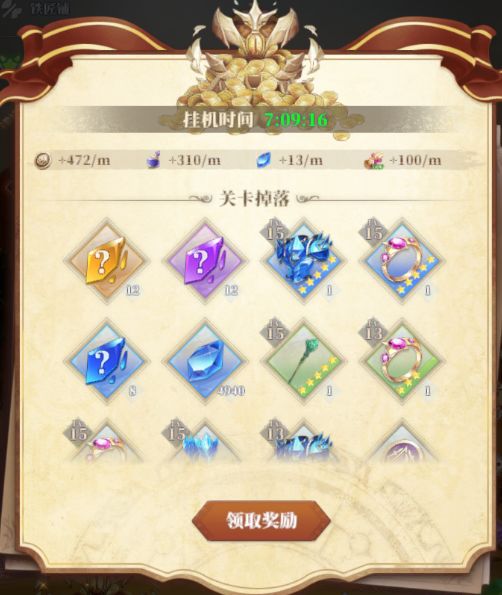推动主线章节可以增加挂机的收益,挂机收益主要有钻石、伙伴强化材料、金币和冒险者经验等。