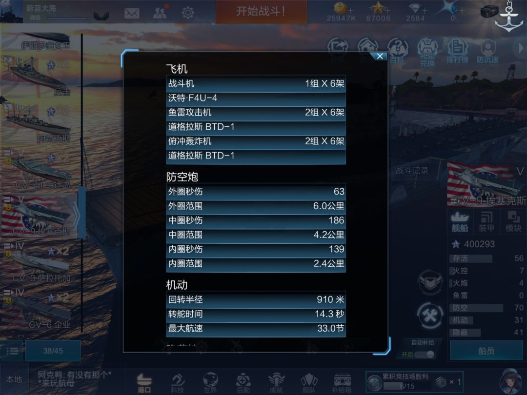 根据百度的说法,列克星敦在战争后期有96门博福斯(四联23座,双联2座),16门厄利孔。而埃塞克斯在后期装有68门博福斯(17座四联),55门厄利孔。