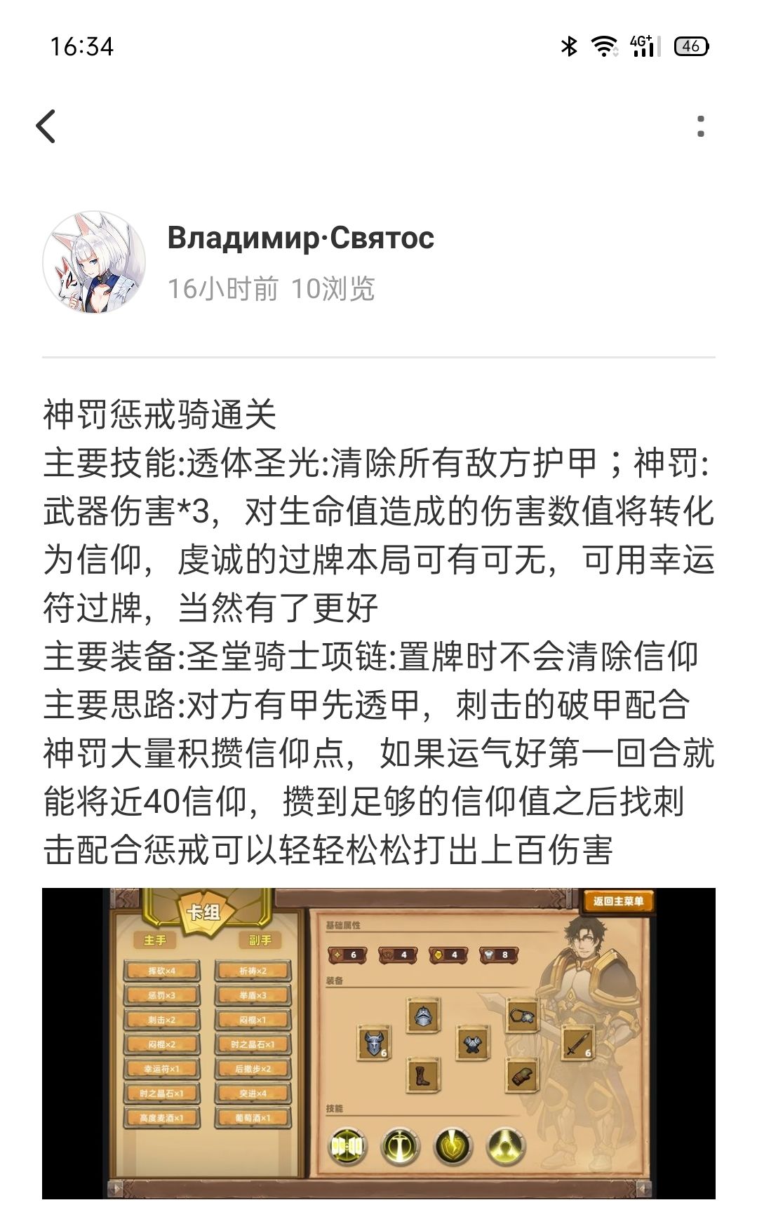 主要装备:铁卫骑士项链(置牌所消耗的信仰按3:1的比例加成格挡值)