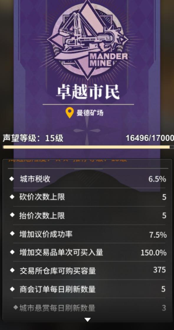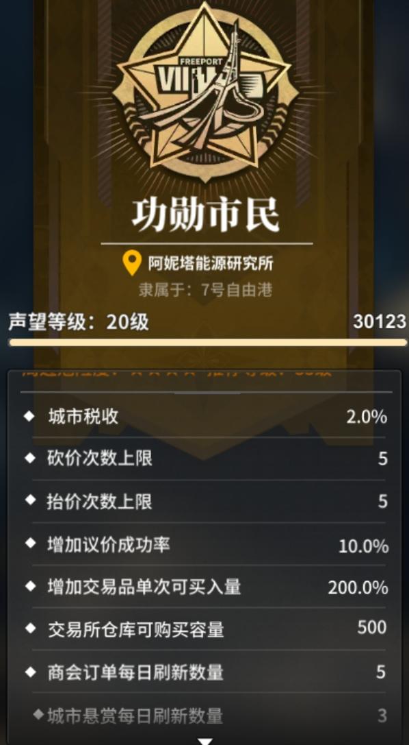 ④我所有主城的荣誉等级,最低的都是12级,自由港是满级(20级),所以只有2%的税率……