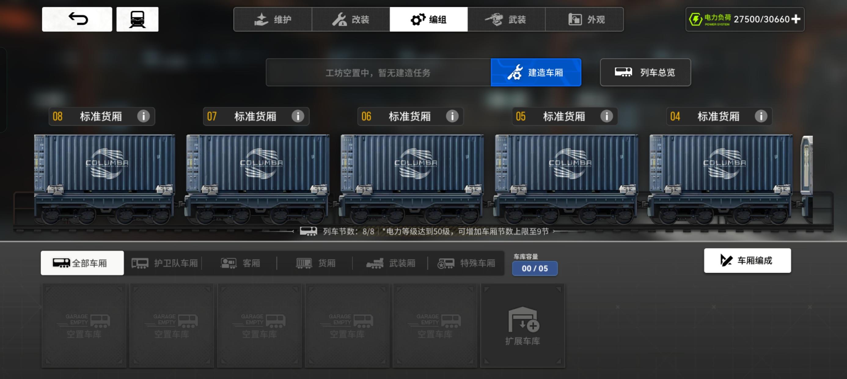 ③我是四标准货厢,没货架,也没重厢,但点了几个角色的列车运货上限共振,货仓640(总计5个标准货厢500+客厢50+护卫50+车长室25+3个共振15)
