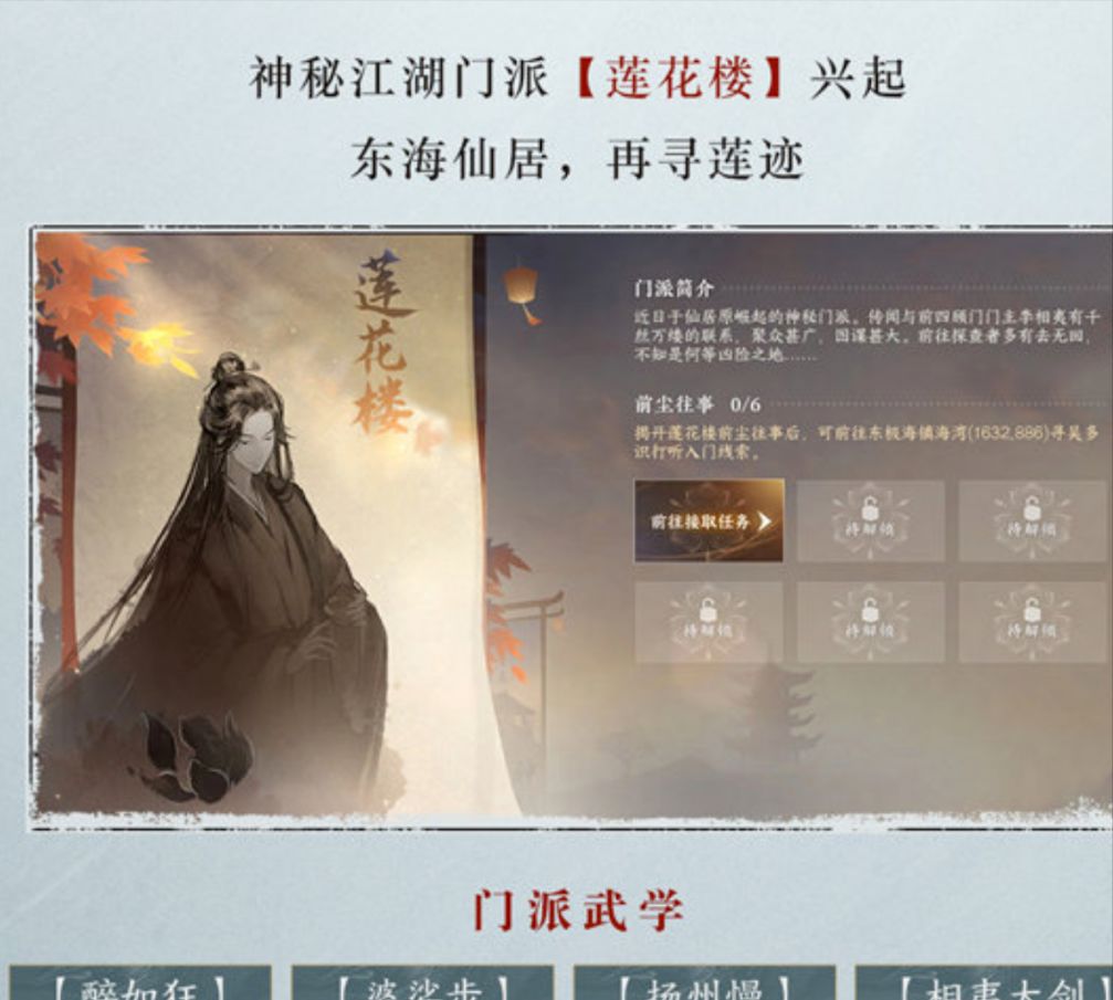 联动【莲花楼】爆料合集:送2套联动时装,第七个江湖门派,